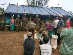 ဆန်တွေခွဲဝေပေးနေသော