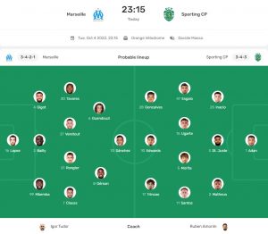 မာဆေး-စပို့တင်းအသင်းများရဲ့ ပွဲထွက်လူစာရင်း