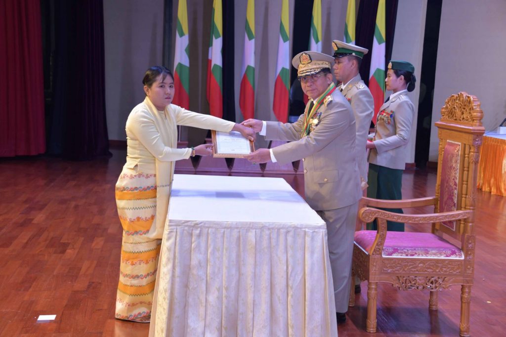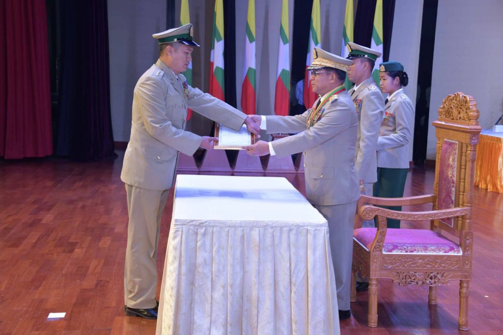 ဗိုလ်ချုပ်မှူးကြီး သတိုးမဟာသရေစည်သူ သတိုးသီရိသုဓမ္မ မင်းအောင်လှိုင် တပ်မတော်စွမ်းရည်သတ္တိဆိုင်ရာ ဂုဏ်ထူးဆောင်တံဆိပ်နှင့် လက်မှတ်များချီးမြှင့်