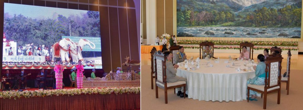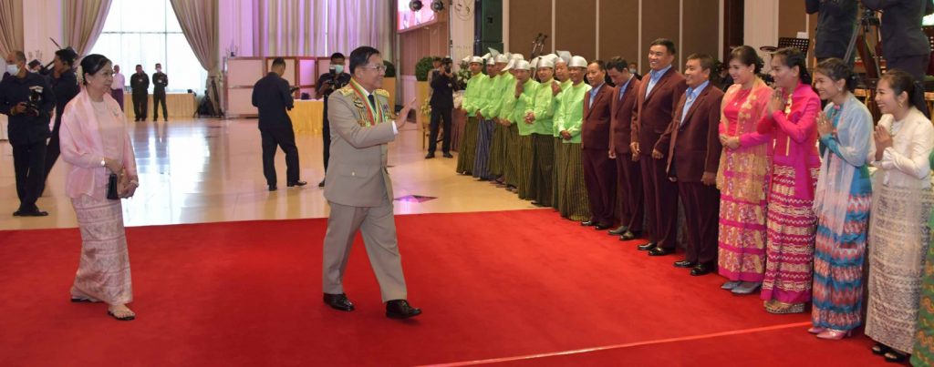 နိုင်ငံတော်စီမံအုပ်ချုပ်ရေးကောင်စီဥက္ကဋ္ဌ တပ်မတော် ကာကွယ်ရေးဦးစီးချုပ်၏ ဇနီး ဒေါ်ကြူကြူလှ၊ နိုင်ငံတော်စီမံအုပ်ချုပ်ရေးကောင်စီ ဒုတိယဥက္ကဋ္ဌ ဒုတိယတပ်မတော်ကာကွယ်ရေးဦးစီးချုပ် ကာကွယ်ရေးဦးစီးချုပ်(ကြည်း) ဒုတိယဗိုလ်ချုပ်မှူးကြီး သီရိပျံချီ မဟာသရေစည်သူ စိုးဝင်းနှင့် ဇနီး ဒေါ်သန်းသန်းနွယ်၊ ကာကွယ်ရေးဦးစီးချုပ်ရုံးမှ တပ်မတော်အရာရှိကြီးများနှင့်ဇနီးများ၊ ပြည်ထောင်စု အဆင့်ပုဂ္ဂိုလ်များနှင့် ဇနီးများ၊ တပ်မတော် စွမ်းရည်သတ္တိဆိုင်ရာ ဂုဏ်ထူးဆောင်တံဆိပ် နှင့် လက်မှတ်လက်ခံရယူကြမည့် အရာရှိ၊ စစ်သည်များနှင့် အမွေခံများ တက်ရောက်ကြပါတယ်။