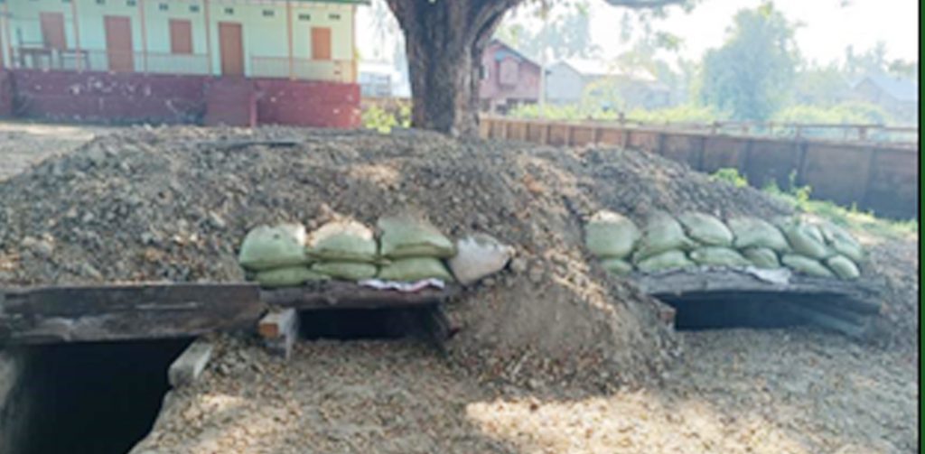 “ေက်ာင္းသားေတြ ေက်ာင္းတက္တဲ့ စာသင္ေက်ာင္းကို စစ္စခန္းအေနနဲ႔ KIA နဲ႔ PDF အဖြဲ႕က ဘန္ကာေတြ လာလုပ္သြားတာ ပါ။ စစ္စခန္းလုပ္ၿပီး ဒီမွာလဲ သူတို႔ရံဖန္ရံခါ ေနပါတယ္။ သူတို႔အင္အားကေတာ့ တစ္ေခါက္လာရင္ အနည္းဆုံးအင္အား ၅၀ နဲ႔ ၁၀၀ ၾကားလာပါတယ္။ သဲအိတ္ေတြ ကိုေတာ့ ၿပီးခဲ့တဲ့ ၁၂ လပိုင္းေလာက္က ကြၽန္ေတာ္တို႔႐ြာကိုလာၿပီး သူတို႔ စစ္စခန္းခ်တဲ့ အခ်ိန္မွာ အကာအကြယ္အေနနဲ႔ သူတို႔လုပ္သြားတာပါ။ ကြၽန္ေတာ္တို႔ ႐ြာကိုလာရင္ သူတို႔ေတြ ဒီစာသင္ေက်ာင္းမွာပဲ စတည္းခ်ၿပီးေနတာမ်ားတယ္ဗ်။ ကေလးေတြ ေက်ာင္းတက္တဲ့ စာသင္ေက်ာင္းကို အကာအကြယ္လုပ္၊ ခုတုံးလုပ္ၿပီးေနတယ္လို႔ပဲ ကြၽန္ေတာ္တို႔ ကေတာ့ အဲဒီလိုပဲထင္တယ္ဗ်။ စာသင္ေက်ာင္းတစ္ဝန္းလုံးအနက္ အကာအကြယ္ေတြ ဘန္ကာေတြ ေဆာက္ထားတာ ႐ြာသားေတြကိုေခၚၿပီး အတင္းအဓမၼခိုင္းၿပီးမွ လုပ္ခိုင္းတာဗ်။ မ်ားေသာအားျဖင့္ ဒီေကာင္ေတြ ဒဏ္ကိုခံရတာကေတာ့ ထမင္းေတြ ခ်က္ေကြၽးရ တယ္။ တစ္အိမ္လွ်င္ ထမင္းသုံးနပ္ ရံဖန္ရံခါဆိုရင္ ဆက္ေၾကးအေနနဲ႔ ပိုက္ဆံ ေကာက္ခံတာေတြလည္းရွိတယ္။ ကြၽန္ေတာ္တို႔ ေက်း႐ြာသားေတြအေနနဲ႔ ကေတာ့ KIA/PDF ေတြလာတာကို လုံးဝမႏွစ္သက္ပါဘူး။ ေက်း႐ြာကလည္း ဒီေကာင္ေတြ ဒဏ္ခံရတာ အၿမဲတမ္း လစဥ္လိုလိုျဖစ္ေနေတာ့ ဒီအဖြဲ႕အစည္းကို လုံးဝလက္မခံပါဘူး။”
