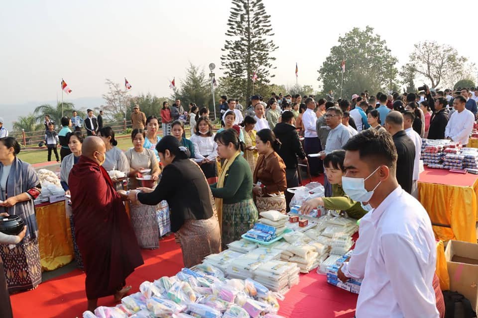 ဦးစွာ တက်ရောက်လာကြသူ ဧည့်ပရိသတ်များက ဩဝါဒဆရာတော်ကြီးများထံမှ အဆုံးအမ တရားများကို နာယူပြီး လှူဒါန်းမှုများအတွက် ရေစက်သွန်းချ အမျှပေးဝေကြသည်။ ထိုနောက် သံဃာတော်များအား ဆွမ်းဆန်တော်၊ ဆီ၊ ဆား၊ ပဲ၊ ဆေး၊ နဝကမ္မ အလှူငွေများနှင့် အခြားလှူဖွယ်ပစ္စည်းများကို ကုသိုလ်ပြု ဆက်ကပ် လောင်းလှူခဲ့ကြကြောင်း သတင်းရရှိပါတယ်။