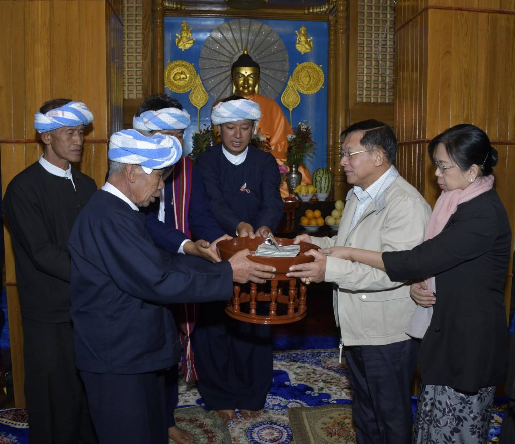 နိုင်ငံတော်စီမံအုပ်ချုပ်ရေးကောင်စီဥက္ကဋ္ဌ နိုင်ငံတော်ဝန်ကြီးချုပ် ဗိုလ်ချုပ်မှူးကြီး မင်းအောင်လှိုင် နှင့် ဇနီးဒေါ်ကြူကြူလှတို့သည် ခရီးစဉ်တွင် လိုက်ပါလာ သည့် အဖွဲ့ဝင်များ၊ ရှမ်းပြည်နယ် ဝန်ကြီးချုပ်၊ အရှေ့ပိုင်းတိုင်းစစ်ဌာနချုပ် တိုင်းမှူးနှင့် တာဝန်ရှိသူများ လိုက်ပါ၍ ပအိုဝ်းကိုယ်ပိုင်အုပ်ချုပ်ခွင့်ရဒေသ၊ ကျောက်တလုံးကြီးမြို့သို့ သွား ရောက်၍ ဒေသဖွံ့ဖြိုး တိုးတက်ရေးဆိုင်ရာများကို ဆွေးနွေးမှာကြားခဲ့တယ်လို့သိရပါတယ်။