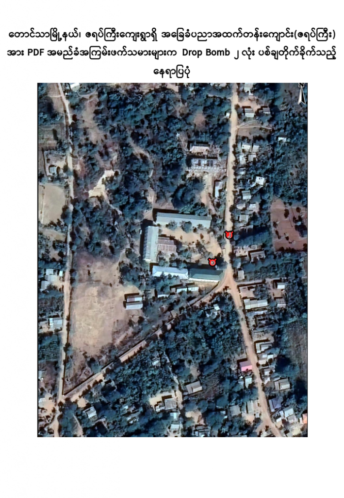 ဇရပ်ကြီးကျေးရွာ စာသင်ကျောင်းသို့ PDF အကြမ်းဖက်သမားများက Drop Bomb များဖြင့် ပစ်ချတိုက်ခိုက်