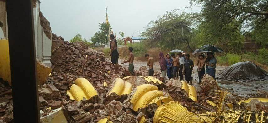 ညောင်ဦးမြို့နယ်၌ လေပြင်းတိုက်ခတ်မှုကြောင့် ရွှေဘုံသာစေတီတော်ပြိုကျပျက်စီး