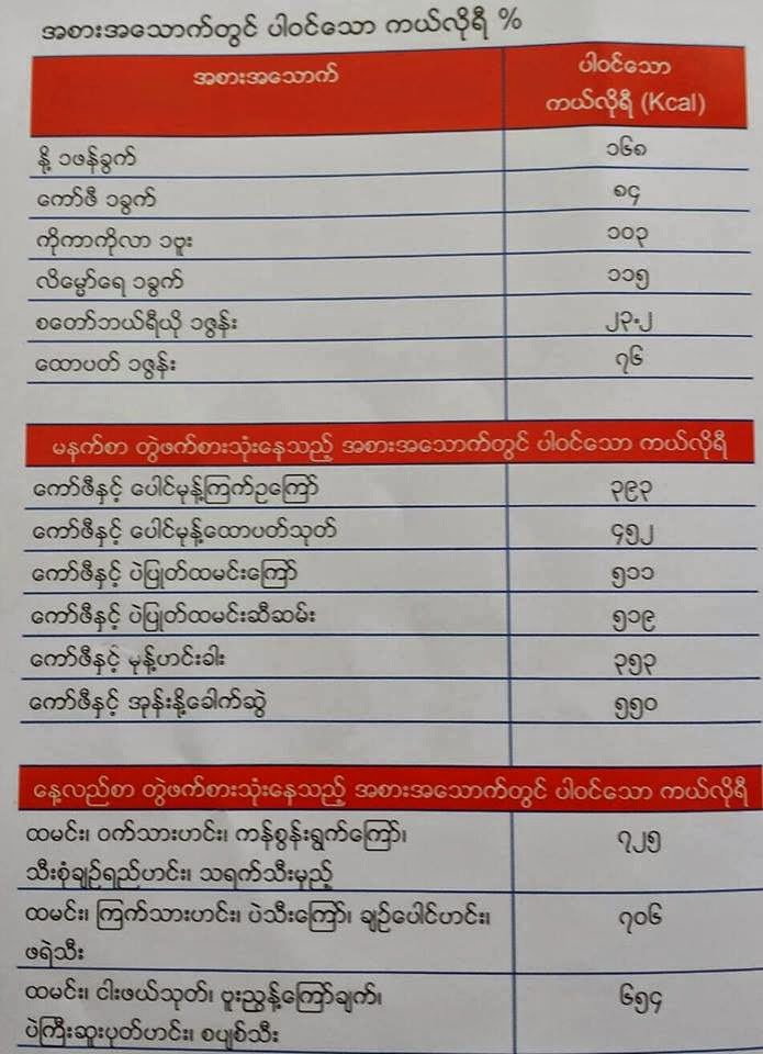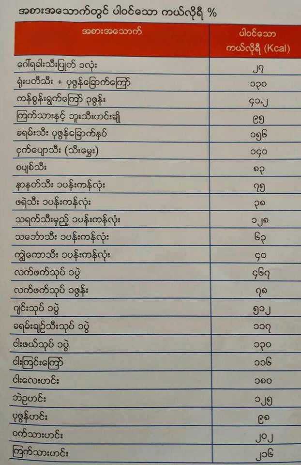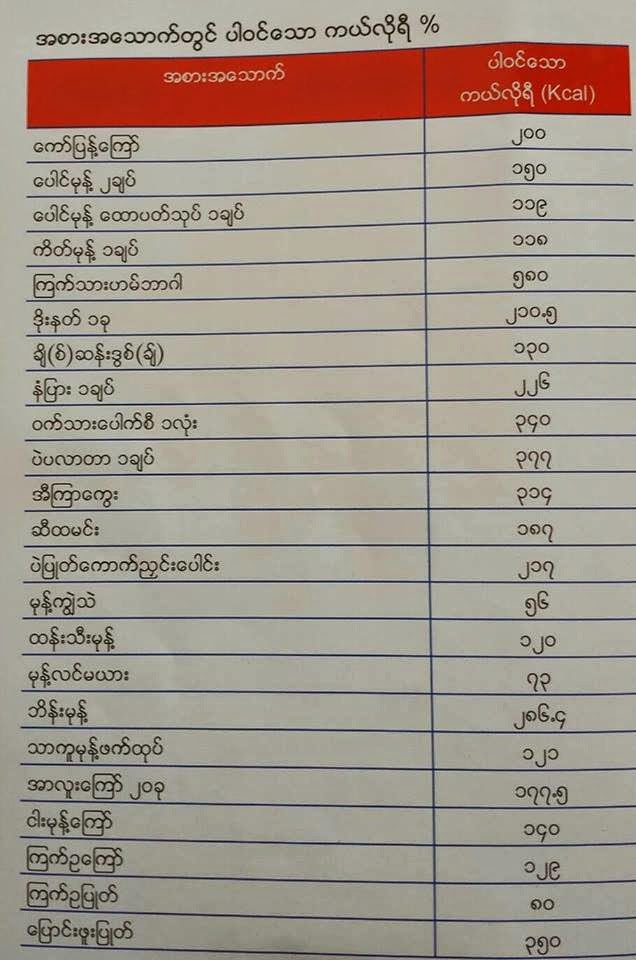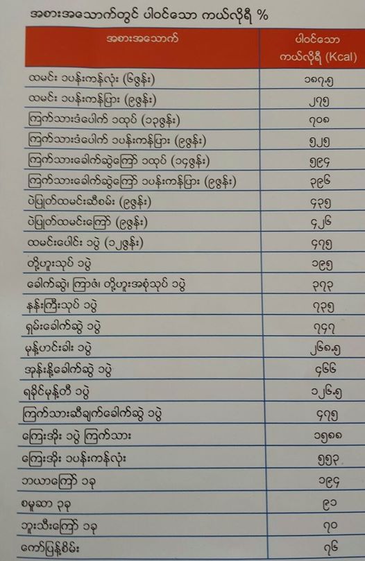 အစားအစာမှာ ကယ်လိုရီပါဝင်မှု ပမာဏလေးတွေကို ဖော်ပြပေးလိုက်ပါတယ်….