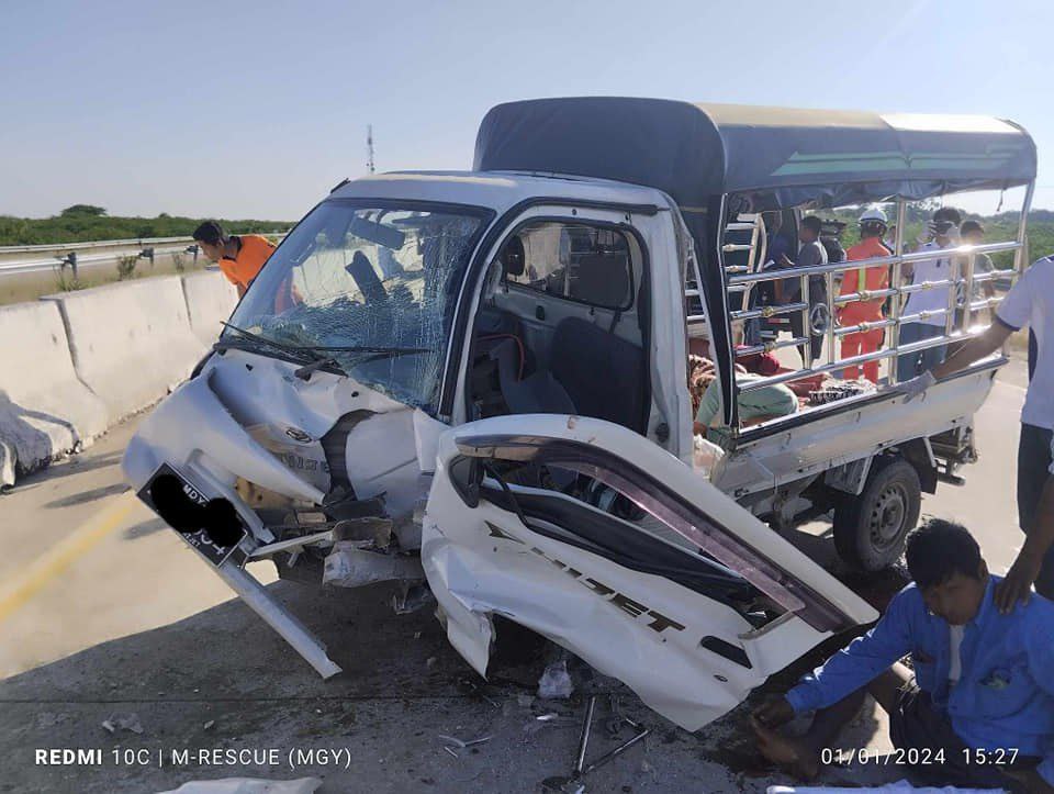 ရန်ကုန် – မန္တလေးအမြန်လမ်းမကြီး၊ မိုင်တိုင် အမှတ် (၃၁၆/၁) နဲ့ (၃၁၆/၂)ကြားမှာ ဒီဇန်နဝါရီ ၁ ရက် နေ့လယ် ၂နာရီ ဝန်းကျင်က အမျိုးသား (၄)ဦးနဲ့ အမျိုးသမီး (၅)ဦး စုစုပေါင်း မိသားစု (၉)ဦးတို့ လိုက်ပါလာတဲ့ Hijet ကားတစ်စီးဟာ မန္တလေးက ဈေးဝယ်ပြီးအပြန် ဘီးပေါက်ပြီး ဘယ်ရီယာတုံးကို ဝင်ရောက်တိုက်မိခဲ့ရာကနေ ကလေးငယ်တစ်ဦးသေဆုံးခဲ့သလို အမျိုးသမီး ၂ ဦးလည်း ပြင်းထန်ဒဏ်ရာရရှိသွားခဲ့တယ်လို့ မြန်မာနိုင်ငံမီးသတ်တပ်ဖွဲ့မှ သိရပါတယ်။