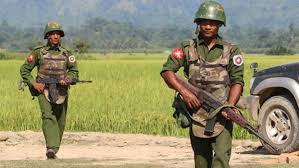 ကိုယ့်ထီးကိုယ့်နန်း၊ ကိုယ့်ကြငှန်းနှင့် လန်းလန်းစွင့်ကာ ရှိခဲ့ပါ၏ လွန်စွာဆိုးယုတ်၊ နယ်ချဲ့စုတ်၏ မဟုတ်တရား၊ လှည့်စားအကွက် ပြုသည့်အချက်ကြောင့်၊ ကျရောက်ခဲ့ရ ကျွန်ဘဝသို့ အလွန်မှပင် နစ်နာခဲ့ရပြီ ယခုတစ်ဖန်၊ကြုံလာပြန်သည် တွေးကြံစိတ်ပိုင်း၊ နယ်ချဲ့မှိုင်းတို့ မိုက်ရိုင်းစော်ကား၊ ဗာလများက ဘုရားကျောင်းကန်၊ ဖျက်ကြပြန်သည် အမှန်ရင်နာရပါ၏ နိုင်ငံအရေး ပေါက်နှင့်ကျေးသို့ ရှုပ်ထွေးခါခါ၊ ခက်လို့လာရ တို့ကတာဝန်၊ ကျေပွန်ဖို့ရာ ရှိခဲ့တာကြောင့်၊ မြန်စွာမနှေး တိုက်ရေးကြွယ်ကြွယ်၊ ပရိယာယ်ဖြင့် မှုန်းခြယ်ရန်သူ၊ နာလန်မထူအောင် ပြုမူကြမ်းစေ၊ မတွေဝေဘဲ တို့တွေနိုင်ငံ၊ စော်ကားမခံရေး ဦးစားပေး၍ တိုက်ရေးရှိက တိုက်ခိုက်ကြစို့။ ဆိုရေးရှိက၊ ပြောကြစို့။ များစွသောင်းသောင်း၊ ပြည်သူအပေါင်းအတွက် ဦးခေါင်းမညွတ်၊ ရွပ်ရွပ်ချွံချွံ တာဝန်ကျေလျက်၊ သက်စွန့်စံဖျား စွန့်စားကြစို့ ရဲဘောတို့..။ ဘိုမျိုး( ရွှေဘို)