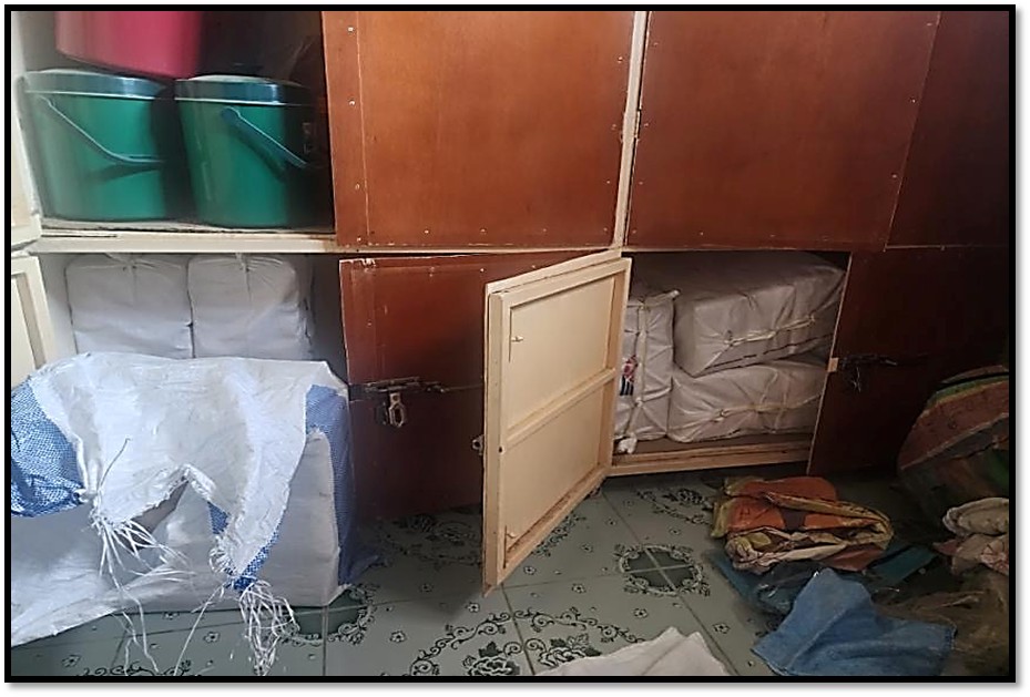 ၂၀၂၄ ခုနှစ် ဇန် ၂၃ ရက် နေ့ ၁၆၃၀ နာရီအချိန်တွင် ပူးပေါင်းအဖွဲ့များသည် သတင်းအရ တာချီလိတ်မြို့၊ ဆေခမ်းရပ်ကွက်၊ ဝမ်ဟောင်နယ်မြေ၊ အိမ်အမှတ် (၈၁) နေ စိုင်းဆွေဆိုင်း(ဘ) ဦးဆု အသက် ၅၁ နှစ်၊ ရှမ်း/ဗုဒ္ဓ ၏ နေအိမ်အား ဝင်ရောက်ရှာဖွေရာ နေအိမ်အိပ်ခန်းရှိ အဝတ်ဘီဒိုအောက်ဆုံးထပ်အတွင်းနှင့် PRADO အမျိုးအစား (လိုင်စင်မဲ့)ယာဉ် ခဲရောင်အတွင်းမှ –