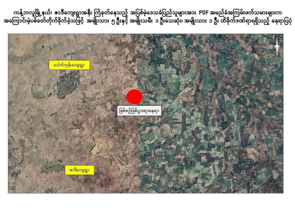 စစ်ကိုင်းတိုင်းဒေသကြီး၊ ကန့်ဘလူမြို့နယ်၊ ဇာဒီကျေးရွာ၏ အရှေ့မြောက်ဘက် မီတာ ၂၀၀၀ ခန့်အကွာ ကြံခင်းအတွင်း ကြံခုတ်နေသည့် ဒေသခံပြည်သူများအား ဇန်နဝါရီလ ၂၃ ရက် နံနက်ပိုင်းတွင် PDF အကြမ်းဖက်သမားများက လက်နက်ငယ်များဖြင့် အကြောင်းမဲ့ပစ်ခတ်တိုက်ခိုက်ခဲ့သဖြင့် အပြစ်မဲ့ဒေသခံပြည်သူ အမျိုးသား ၅ ဦးနှင့် အမျိုးသမီး ၁ ဦးတို့သေဆုံးခဲ့ရပြီး အမျိုးသား ၁ ဦး ထိခိုက်ဒဏ်ရာရခဲ့ကြောင်းသိရပါတယ်။