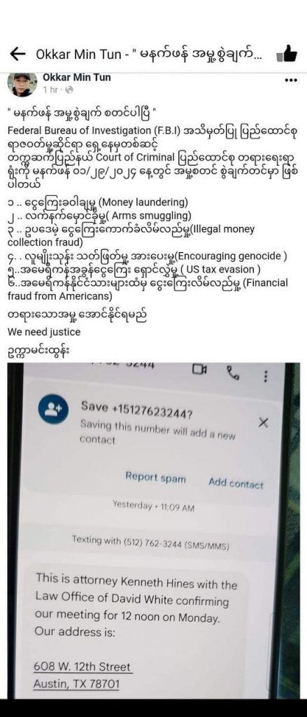 Social Network ပေါ်မှာ ပရောဂျက်ပေါင်းများစွာကို နာမည်ပေါင်းမျိုးစုံတပ်ပြီး နွေဦးတော်လှန်ရေးခေါင်းစဉ်ဗန်းပြပြီး ထောက်ပို့ထားတဲ့ ငွေကြေးတွေကိုလိမ်လည်၍ ပေးချင်သလောက်သာပေးပြီး ကတုံးပေါ်ထိပ်ကွက်လုပ်ကာ အနူဂျီကို အရူးလုပ် အိပ်ကပ်ထဲကောက်ထည့်ထားတဲ့ ပန်ဆယ်လို၊ စတိုးဆိုင်တွေဝယ်လိုက် အိမ်တွေဝယ်လိုက်နဲ့ စိတ်ထင်တိုင်းလုပ်နေတဲ့ ပန်ဆယ်လို၊ အမေရိကန်ကိုရောက်တာမှမကြာသေဘူး နှစ် ဆယ်နဲ့ချီနေထိုင်နေကြတဲ့ အမေရိကန်က မြန်မာတွေကိုပါ ဆဲရေးတိုင်းထွာပြီး သောက်ဂရုမစိုက်ဘူးဆိုတဲ့ပန်ဆယ်လိုကို ငွေကြေးခဝါချမှု၊ လက်နက်မှောင်ခိုမှု၊ ဥပဒေမဲ့ငွေကြေးလိမ်လည်ကောက်ခံမှုစတဲ့ အမှု ၆ မှု နဲ့ စွဲချက်တင်တော့မယ်လို့သိရပါတယ်။