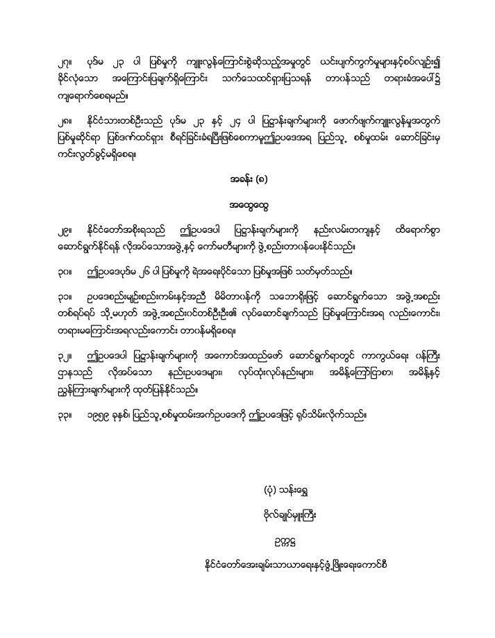 📘မကြာမီ နည်းဥပဒေ၊ SOP ၊အမိန့်နှင့်ညွန်ကြားချက်များဆက်လက်ထုတ်ပြန်ပါလိမ့်မည်။