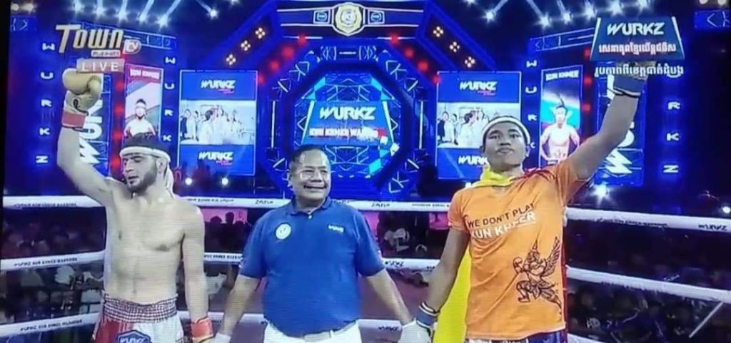 ကမ္ဘောဒီးယားနိုင်ငံ၊ ဖနွမ်းပင်မြို့တွင် ယမန်နေ့ မတ်လ (၁၇)ရက်နေ့က ကျင်းပပြုလုပ်သော ခွန်ခမာချန်ပီယံခါးပတ်လုပွဲ၌ မြန်မာကိုယ်စားပြု ယှဉ်ပြိုင်ထိုးသတ်ခဲ့သည့် ရိုးရာလက်ဝှေ့ဖိုက်တာ စိုးမိုးဇော်က ဥပါကစ္စတန်သား အာဆတ်ကို ဒိုင်အမှတ်ဖြင့် အနိုင်ရရှိခဲ့သည်။