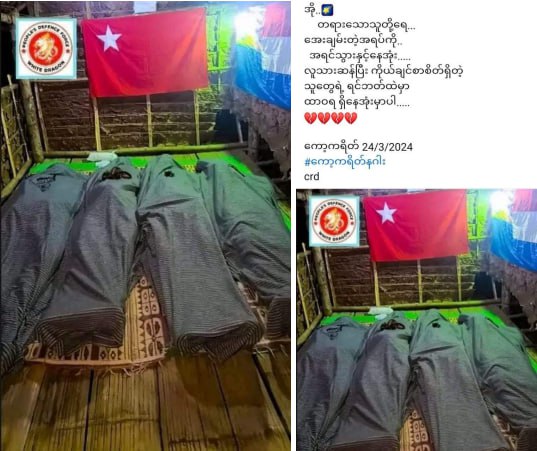 ကရင်ပြည်နယ်တိုက်ပွဲအတွင်းမှာ သေဆုံးသွားခဲ့သည့် KNU လက်အောက်ခံ၊ နဂါးဖြူစစ်ကြောင်း(ခ) ကော့ကရိတ်နဂါးအကြမ်းဖက်များမှ၏ အလောင်းများပဲ ၂၄-၃-၂၀၂၄ ရက်မှ ၎င်းတို့၏ လူမှုကွန်ယက်မှတင်ထားတာပဲ ဖြစ်ပါတယ်။ တစ်နေ့ထက် တစ်နေ့အကြမ်းဖက်များ၏ သေဆုံးမှုများဟာ သိသိသာသာတိုးမြှင့်လာနေကြောင်း တွေ့ရှိရပါတယ်။
