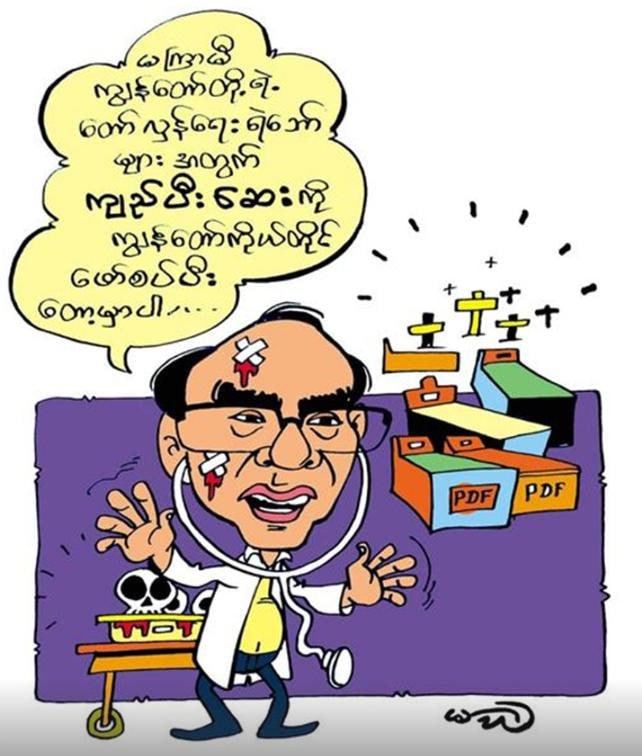 အကြမ်းဖက်သမားများဖြစ်သည့် PDF များ အနေဖြင့် တိုက်ပွဲများအတွင်းသေဆုံးဒဏ်ရာရများ များပြားနေတာကြောင့် ဒေါက်တာ ဇော်ဝေစိုးမှ PDF များအတွက် သီးသန့်ထုတ်လုပ်ထားသည့် ကျည်ပြီးဆေးများကို မကြာခင်ပေးတော့မှာဖြစ်တယ်လို့ သိရပါတယ်…