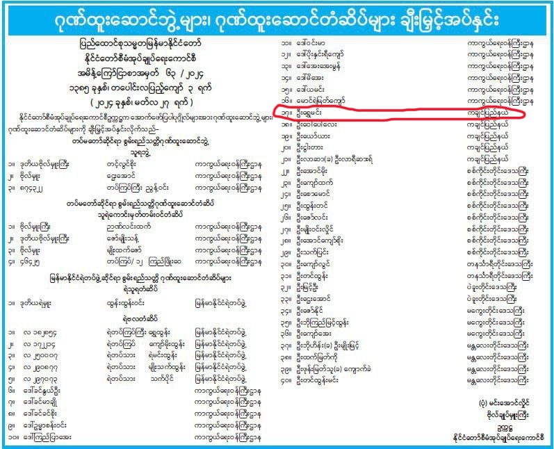 ပြည်ထောင်စုသမ္မတမြန်မာနိုင်ငံတော်၊ နိုင်ငံတော်စီမံအုပ်ချုပ်ရေးကောင်စီဥက္ကဋ္ဌက KIA အကြမ်းဖက်သောင်းကျန်းသူများ၏ ချောင်းမြောင်းလုပ်ကြံမှုကြောင့် ကျဆုံးသွားခဲ့ရသော လီဆူး ပြည်သူ့စစ်ခေါင်းဆောင် ဦးရွှေမင်းအား ရဲဗလတံဆိပ် ဂုဏ်ပြုချီးမြှင့်ပေးအပ်ခဲ့ကြောင်းသိရပါတယ်။