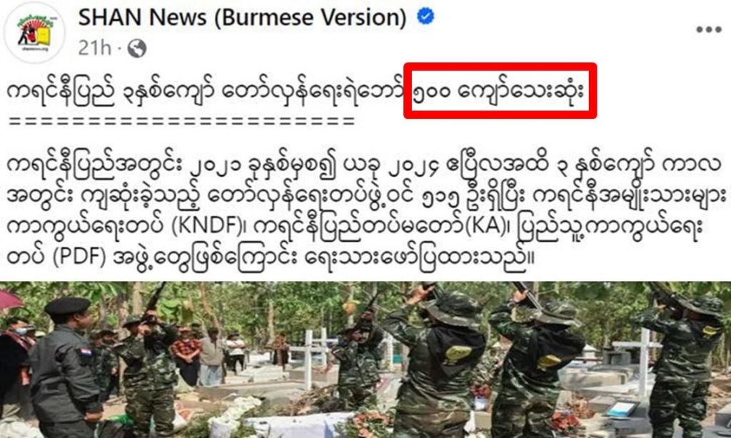 အကြမ်းဖက်လက်နက်ကိုင်အဖွဲ့တစ်ခုဖြစ်တဲ့ KNDF လက်နက်ကိုင်အနေဖြင့် သုံးနှစ်ကျော်ကာလ တိုက်ပွဲအတွင်း တပ်ဖွဲ့ဝင် ၅၀၀ ကျော်သေဆုံးခဲ့ဟု လူမှုကွန်ယက်တွင် ဖော်ပြခဲ့သည်။
