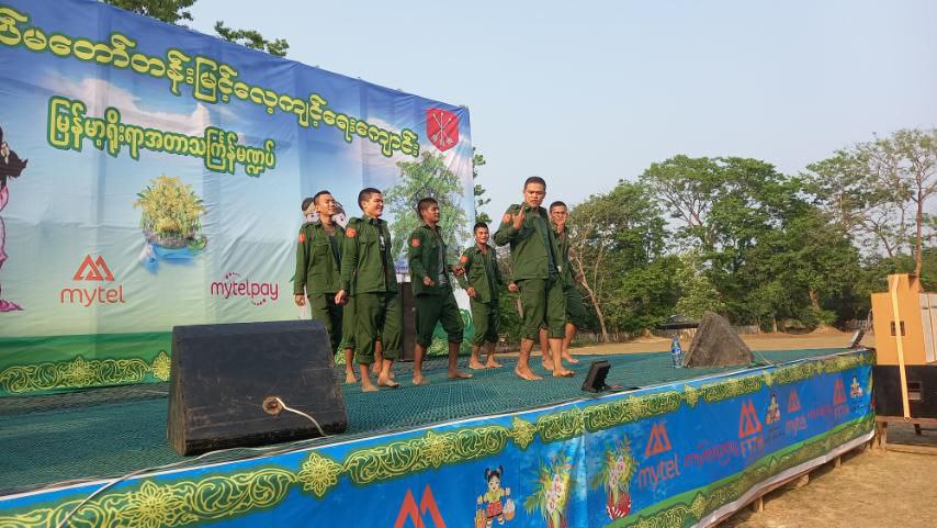 တတက-၁ မှာ ပြည်သူ့စစ်မှုထမ်းသင်တန်းတက်ရောက်နေကြတဲ့ နိုင်ငံ့သားကောင်းလေးများကတော့ အများနည်းတူ နှစ်သစ်ကူးမဟာသင်္ကြန်ပွဲတော်ကိုပျော်ရွှင်စွာ ဆင်နွှဲနေကြပါပြီနော်.။ မြေပြင်မှာကဲရတာ အားမရလို့ စင်ပေါ်မှာပါ ခုလိုမျိုးပဲ ဟန်ချက်ညီညီနဲ့ ကပြဖျော်ဖြေခဲ့ကြပါတယ်.။