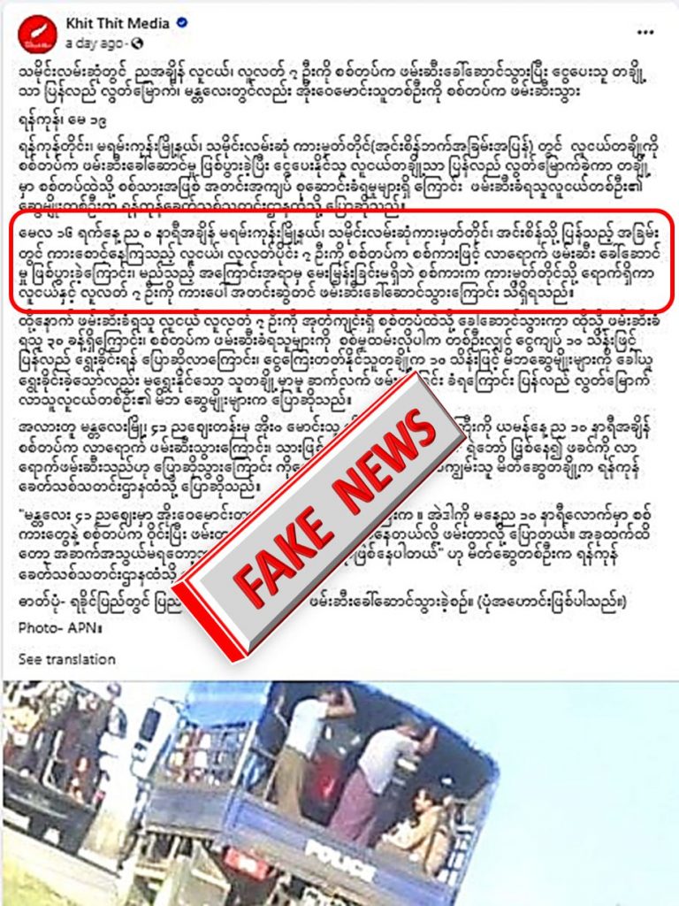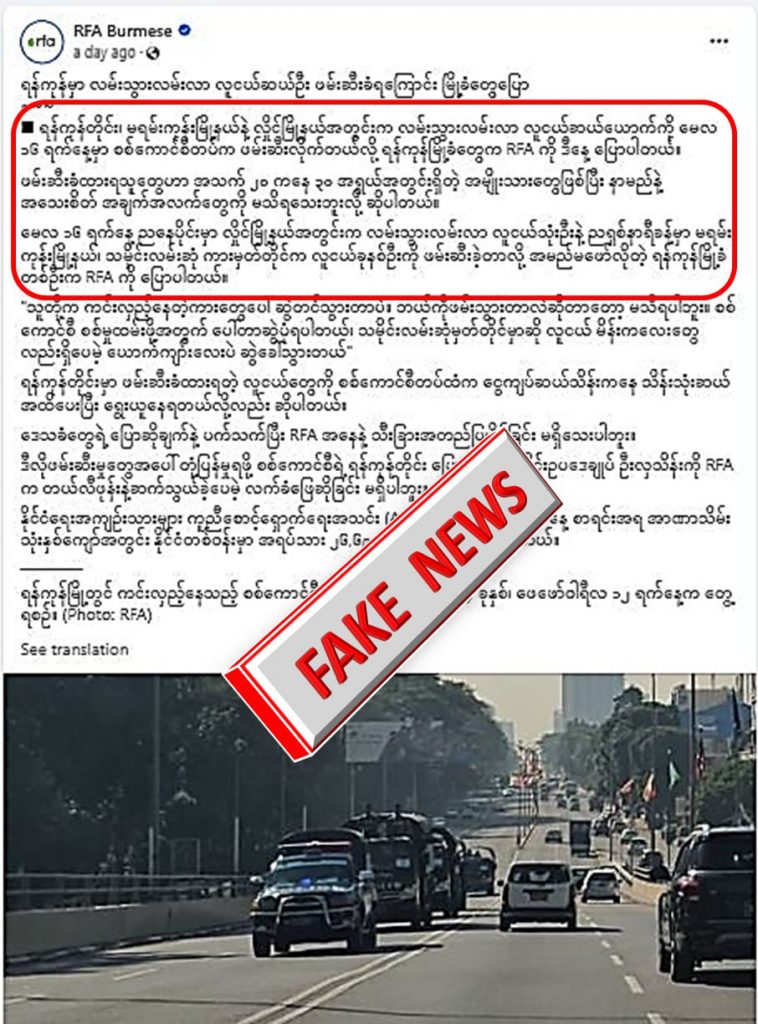 မေလ ၁၆ ရက်နေ့ လှိုင်မြို့နယ်နှင့် မရမ်းကုန်းမြို့နယ်၊ သမိုင်းလမ်းဆုံ ကားမှတ်တိုင်တို့တွင် လုံခြုံရေးတပ်ဖွဲ့ဝင်များအနေဖြင့် လူငယ်တစ်ဦးတစ်ယောက်မှ ဖမ်းဆီးခဲ့ခြင်းမရှိသော်လည်း Khit Thit Media နှင့် RFA တို့မှ လုံခြုံရေးတပ်ဖွဲ့ဝင်များက လူငယ်များကို ဖမ်းဆီးသွားတယ်ဆိုပြီး အများပြည်သူများ အထင်အမြင်လွဲမှားစေရန် လုပ်ဇာတ်ဆင်ကာ အပုပ်ချရေးသားထားခြင်းသာ ဖြစ်ပါတယ်။