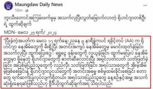 AA အဖွဲ့ရဲ့လူမျိုးတုံးသတ်ဖြတ်မှုများအား မျက်မြင်သက်သေပြောပြီ