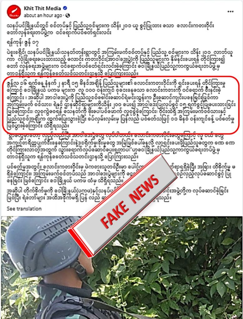 ဇွန်လ ၁၆ ရက်နေ့ သနပ်ပင်မြို့နယ်၊ သနတ်တန်းရွာတွင် လောင်းကစားဝိုင်းပြုလုပ်ထားခြင်းနှင့် ငွေကြေးယူကာ ခွင့်ပြုခဲ့ခြင်းများ မရှိခဲ့သော်လည်း Khit Thit Media မှ အပြစ်မဲ့ ပြည်သူများကို အကြောင်းမဲ့ သတ်ဖြတ်နေတဲ့ PDF အဖွဲ့ကို အမွှန်းတင် ၍ လုံခြုံရေးတပ်ဖွဲ့ဝင်များအား အများပြည်သူများ အထင်အမြင်သေးပြီး မုန်းတီးစေရန် လုပ်ဇာတ်ဆင်ကာ အပုတ်ချရေးသားထားခြင်းသာဖြစ်ပါတယ်။ #Crd