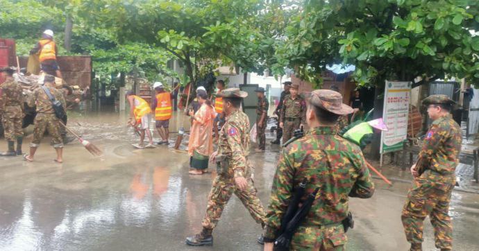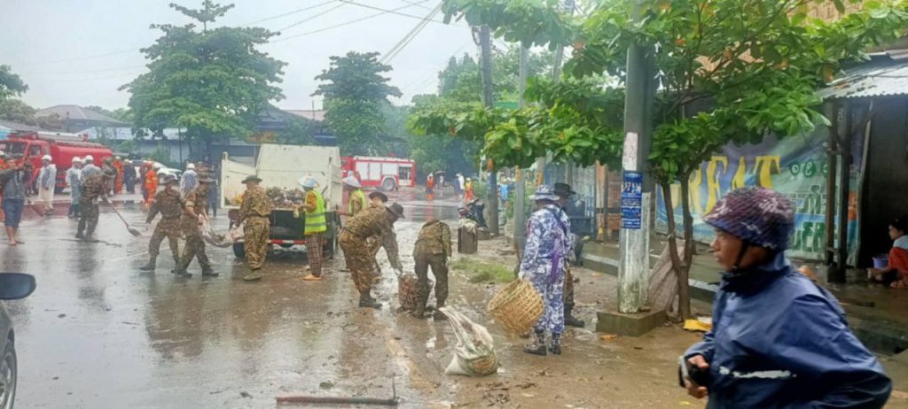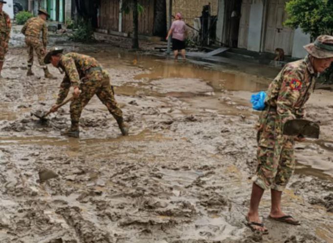 ရေပြန်ကျသွားပြီဖြစ်တဲ့ မြစ်ကြီးနားမြို့ပေါ်က လမ်းတွေ၊ ဘုန်းတော်ကြီးကျောင်းတွေ၊ စာသင်ကျောင်းတွေနဲ့ ပြည်သူ့နေအိမ်တွေမှာ တပ်မတော်သားတွေ၊ ရဲတပ်ဖွဲ့ဝင်တွေ၊ မီးသတ်တပ်ဖွဲ့ဝင်တွေက စုပေါင်းသန့်ရှင်းရေး ပြုလုပ်ပေးလျက်ရှိကြောင်းသိရပါတယ်။