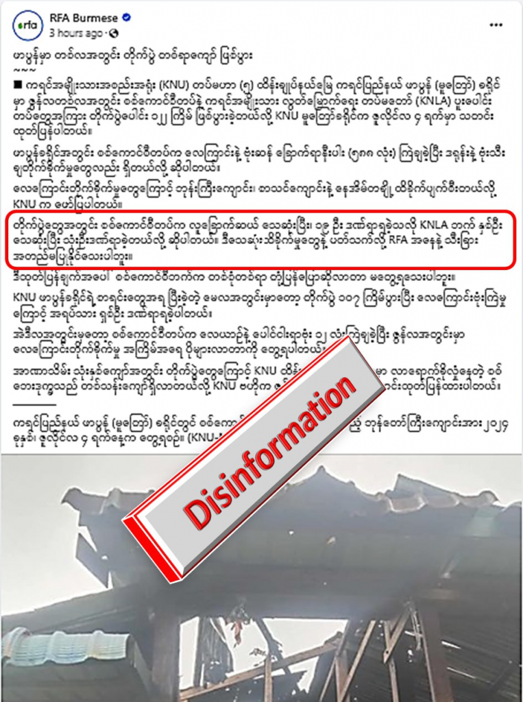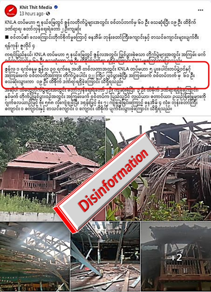 ဇွန်လအတွင်း ဖာပွန်မြို့ နယ်တွင် တပ်ဖွဲ့ ဝင်များနှင့် KNU / KNLA / PDF အဖွဲများ ထိတွေ့တိုက်ပွဲ ၂၈ ကြိမ်ဖြစ်ပွားခဲ့ပြီး တပ်ဖွဲဝင် ၆ ဦးသာ ထိခိုက်ကျဆုံးခဲ့သော်လည်း Khit Thit Media နှင့် RFA တို့ မှ အမှန်မရေးဘဲ တိုက်ပွဲပေါင်း ၁၂၂ ကြိမ်ဖြစ်ပွားခဲ့သဖြင့် တပ်ဖွဲဝင် ၆၀ ဦး သေဆုံးတယ်ဆိုပြီး ပုံကြီးချဲ့ကာ လိမ်ညာရေးသားထားခြင်းသာဖြစ်ပါတယ်။