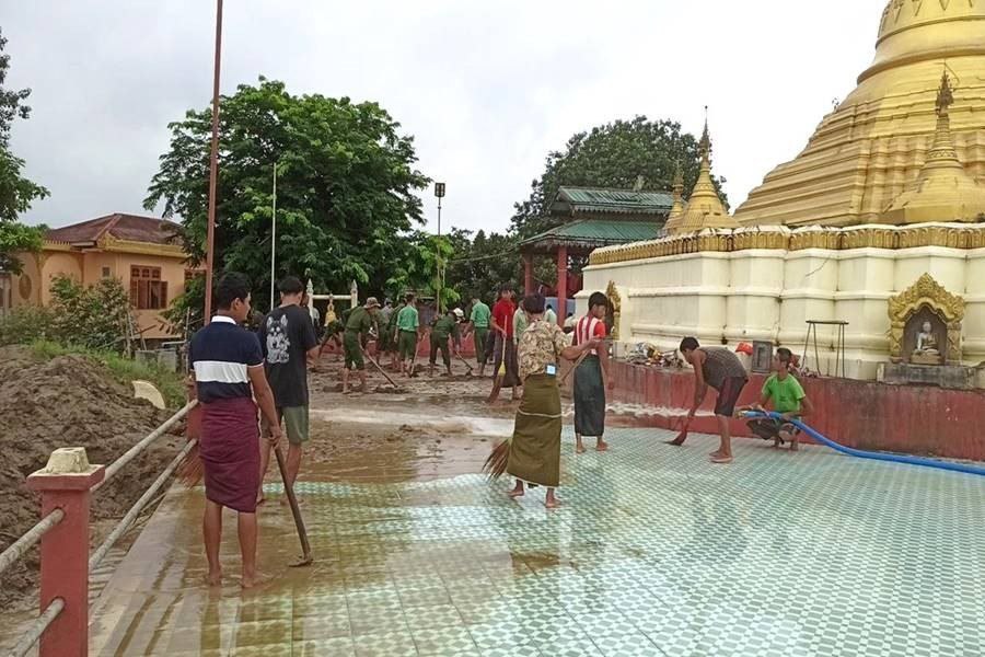ကချင်ပြည်နယ်၊ တနိုင်းမြို့နယ်အတွင်း ဇူလိုင် ၂ ရက်နေ့တွင် မိုးသည်းထန်စွာ ရွာသွန်းမှုကြောင့် ဧရာဝတီမြစ်ရေမြင့်တက်မှုဖြစ်ပေါ်ခဲ့ပြီး တနိုင်းမြို့အတွင်းရှိ ရပ်ကွက်များအတွင်းသို မြစ်ရေဝင်ရောက်မှုဖြစ်ပေါ်ခဲ့သည်။ ယခုအခါမြစ်ရေပြန်လည် ကျဆင်းသွားပြီဖြစ်သဖြင့် တနိုင်းမြို၊ ဆင်ဆာ့ကောင်းရပ်ကွက်ရှိ ဇေယျာသီရိပရိယတ္တိစာသင်တိုက်၌ ယမန်နေ့က နယ်မြေခံတပ်မတော်သားများ၊ မြန်မာနိုင်ငံရဲတပ်ဖွဲဝင်များ၊ မီးသတ်တပ်ဖွဲဝင်များနှင့် ဌာနဆိုင်ရာများ စုပေါင်း၍စာသင်တိုက်အတွင်းရှိ စေတီပုထိုးများ၊ ကျောင်းဆောင်များအတွင်း ကျန်ရှိနေသော နှုးများ၊ သဲများနှင့် အမှိက်များရှင်းလင်းခြင်း၊ ရေမြောင်းများ တူးဖော်ပေးခြင်းနှင့် သစ်ပင်သစ်ကိုင်းများ ခုတ်ထွင်ရှင်းလင်းခြင်းများ ဆောင်ရွက်ပေးခဲ့ကြတယ်လို့ သိရပါတယ်ရှင်