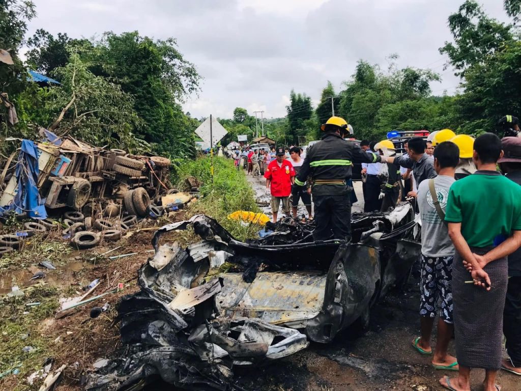 ကျိုင်းတုံ-တာချီလိတ် ပြည်ထောင်စုလမ်းမကြီးတွင် (၁၂)ဘီးယာဉ်နှင့် Toyota Succeed ယာဉ်တို တိုက်မိပြီး ၆ ဦးသေဆုံးခဲ့တယ်လို့သိရပါတယ်။ #Crd