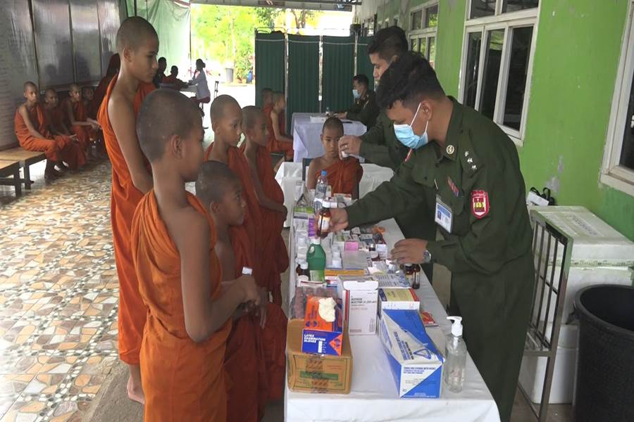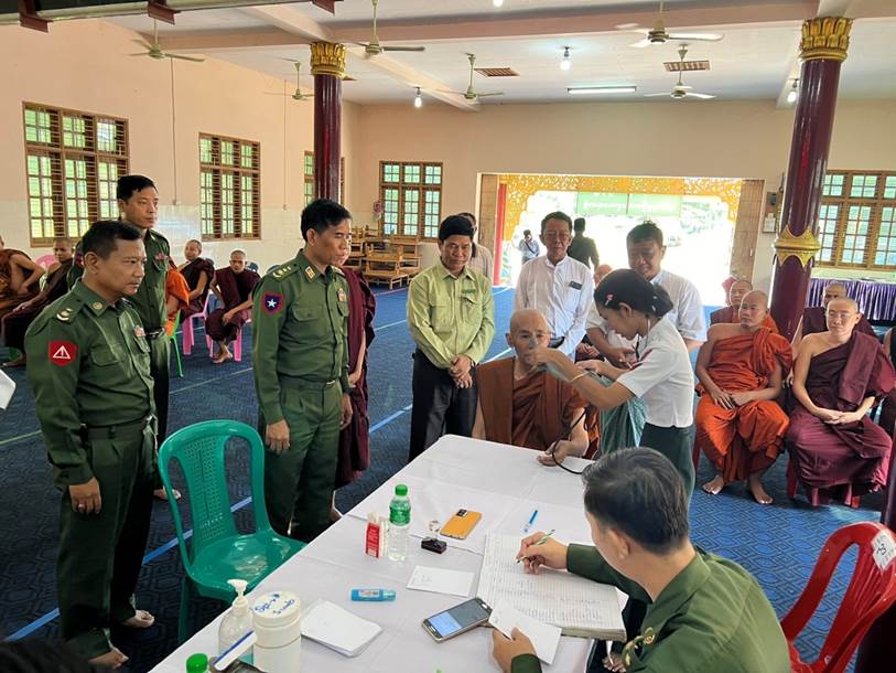 ထိုသို့ဆောင်ရွက်ပေးရာတွင် ဆေးကုသရေးအဖွဲ့က သံဃာတော် ၈၀ ပါး တို့ကို အရိုးအကြောရောဂါ၊ သွားနှင့် ခံတွင်းရောဂါ၊ ခွဲစိတ်ကုသမှုဆိုင်ရာရောဂါ၊ နား၊ နှာခေါင်း၊ လည်ချောင်းရောဂါ၊ ကလေးရောဂါ၊ နှလုံးရောဂါ၊ သွေးတိုးရောဂါ၊ အသက် ရှူလမ်းကြောင်း ဆိုင်ရာရောဂါ၊ အထွေထွေရောဂါတို့နှင့် ပတ်သက်၍ လိုအပ်သည့် ကျန်းမာရေး စစ်ဆေးကုသပေးခြင်းများ ဆောင်ရွက်ပေးခြင်း၊ ECG စက်ဖြင့် ရောဂါ ရှာဖွေစမ်းသပ်ခြင်းနှင့် ဆေးရုံတက်ရောက်ကုသရန် လိုအပ်သည့် သံဃာတော်များအား နယ်မြေခံ တပ်မတော်ဆေးရုံသို့ တက်ရောက် ဆေးကုသနိုင်ရေး စီစဉ်ဆောင် ရွက်ပေးခဲ့တယ်လို့ သိရပါတယ်။