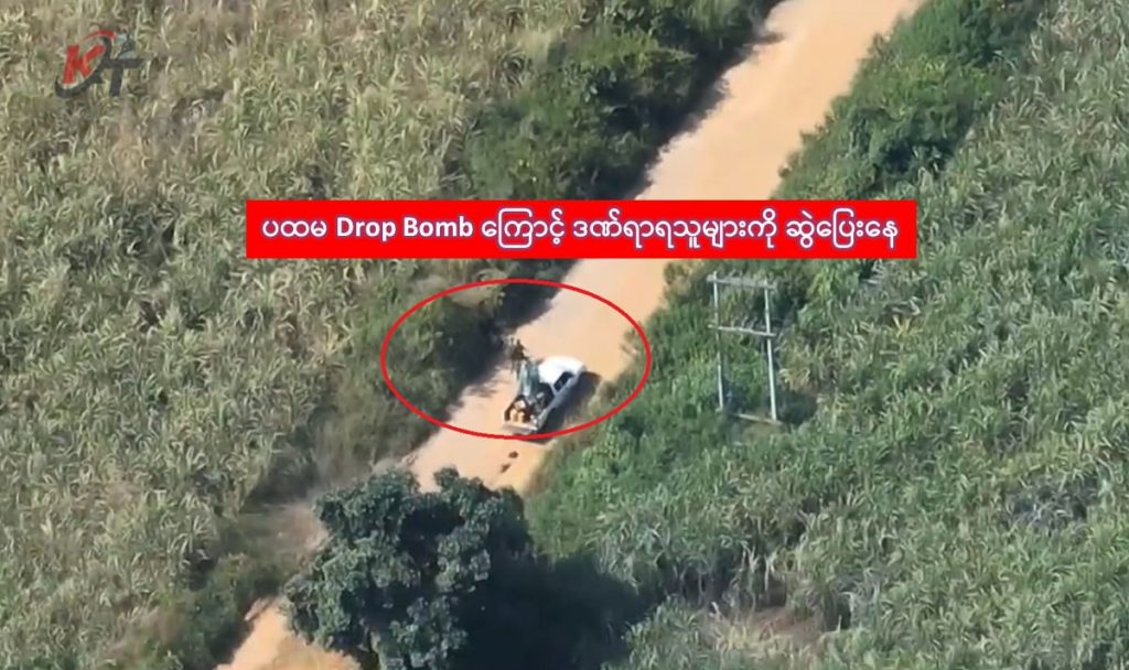 Mission Accomplish ဒီပုံလေးတွေကတော့ နောင်ချို၊ ဂန့်ဂေါ်ဘက်က ရန်သူ့ Drone Jammer တင်ယာဉ်အား ဗုံးကြဲတိုက်ခိုက်မှု ပုံလေးတွေဖြစ်ပါတယ်။
