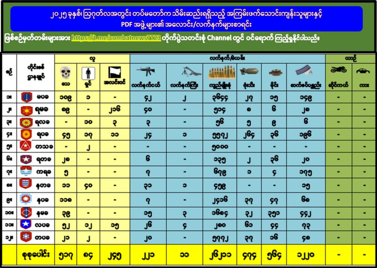 နိုဝင်ဘာ ၂၉ ရက် နေ့လည်အချိန်က စစ်ကိုင်းတိုင်း၊ မြင်းမူမြို့တွင် နယ်မြေရှင်းလင်းနေသည့် စစ်ကြောင်းသည် ရန်သူ့ Drone ၂ စီး ပျံသန်းလာသည်ကို တွေ့ရှိသဖြင့် Drone Gun ဖြင့် ပစ်ချခဲ့ရာ –