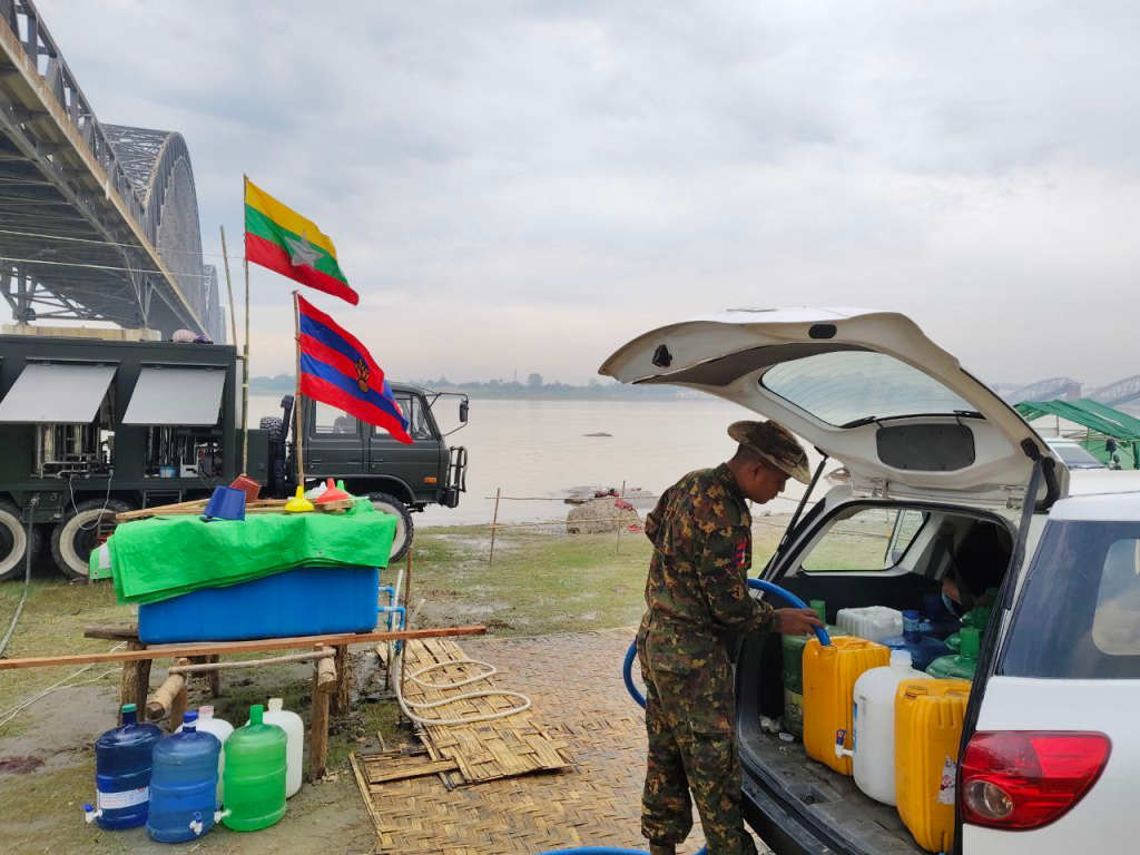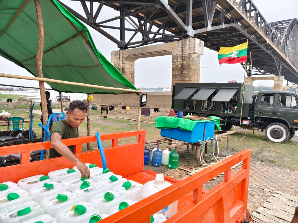 ငလျင်ဒဏ်သင့်ပြည်သူများအား သောက်သုံးရေအဆင်ပြေစေရန်အတွက် တပ်မတော်အနေဖြင့် စစ်ကိုင်းတံတားသစ်အောက်တွင် တပ်မတော်ရေသန့်စက်မော်တော်ယာဥ်ဖြင့် ရေသန့်များဖြန့်ဖြူးပေးလျက်ရှိကြောင်း သိရှိရပါတယ်။