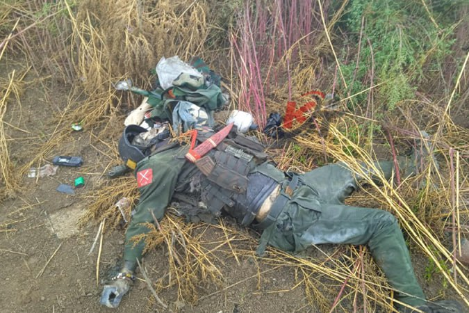 မေလ ၁ ရက်နေ့က ဗန်းမော်မြို့၊ မင်းကျောင်းကုန်းရပ်ကွက်အတွင်း နယ်မြေရှင်းလင်းစဉ် တွေ့ရှိခဲ့ရတဲ့ အကြမ်းဖက် KIA/PDF အလောင်း ၉ လောင်းနဲ့ လက်နက် ၈ လက် ပုံတွေ ဖြစ်ပါတယ်။ အလောင်းတွေက ပုပ်တောင်ပုပ်နေကြပြီ။