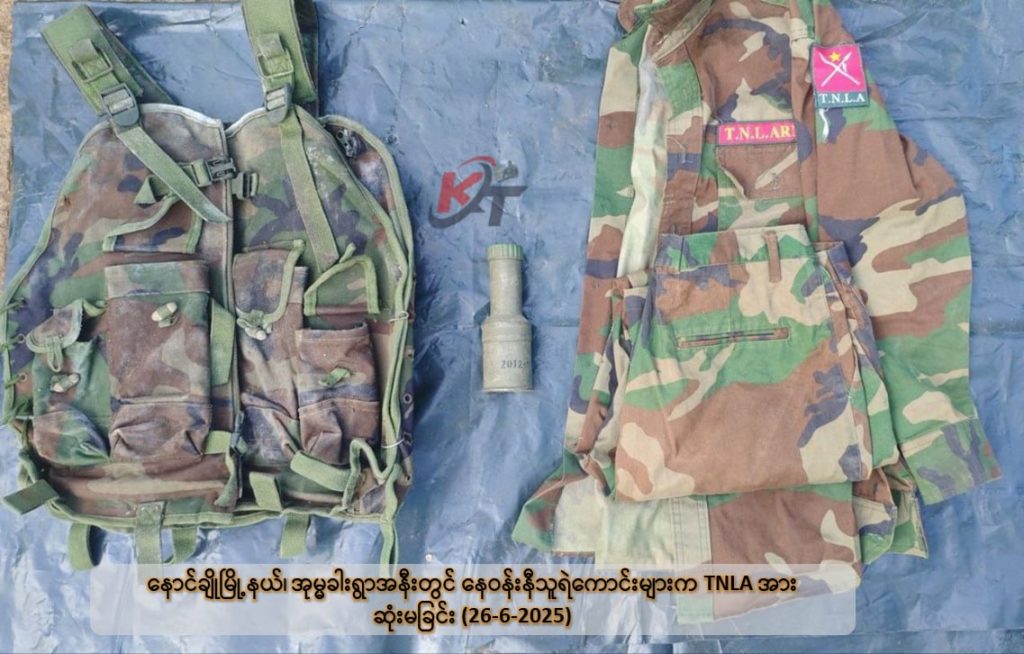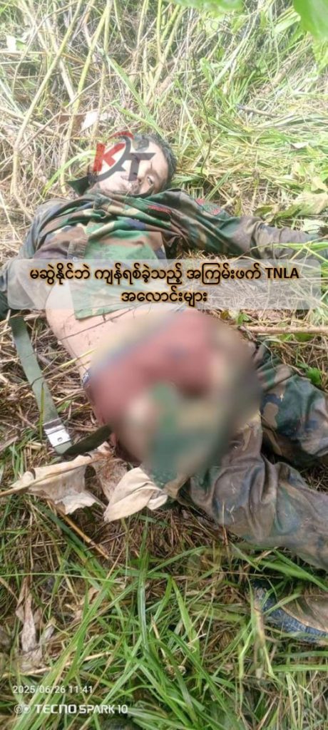 (အုမ္မခါး)ဇွန်လ ၂၆ ရက်(ယနေ့) မွန်းလွဲပိုင်းအချိန် နေဝန်းနီသူရဲကောင်းများက ကျောက်မဲခရိုင်၊ နောင်ချိုမြို့နယ်၊ အုမ္မခါးရွာအနီးတွင် ပြည်သူကို အနိုင်ကျင့်နှိပ်စက်နေသည့် အကြမ်းဖက် TNLA အား ချေမှုန်းသုတ်သင်ခဲ့ပြီး ရန်သူ ဆုတ်ခွာသွားခဲ့သည်။