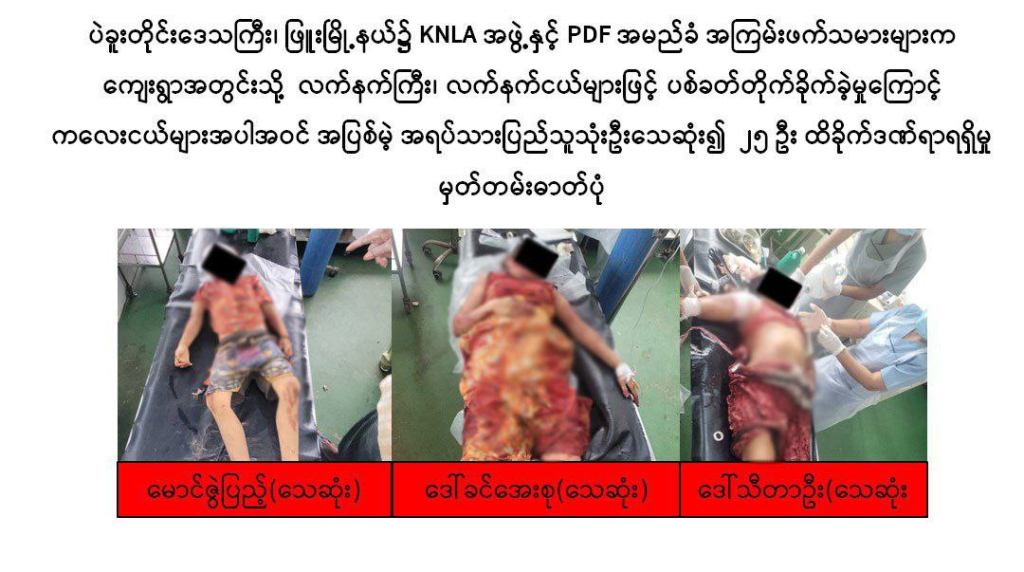 KNLA/PDF များ၏ ပစ်ခတ်မှုကြောင့် ၃ ဦး သေဆုံးပြီး ၂၅ ဦး ဒဏ်ရာရ