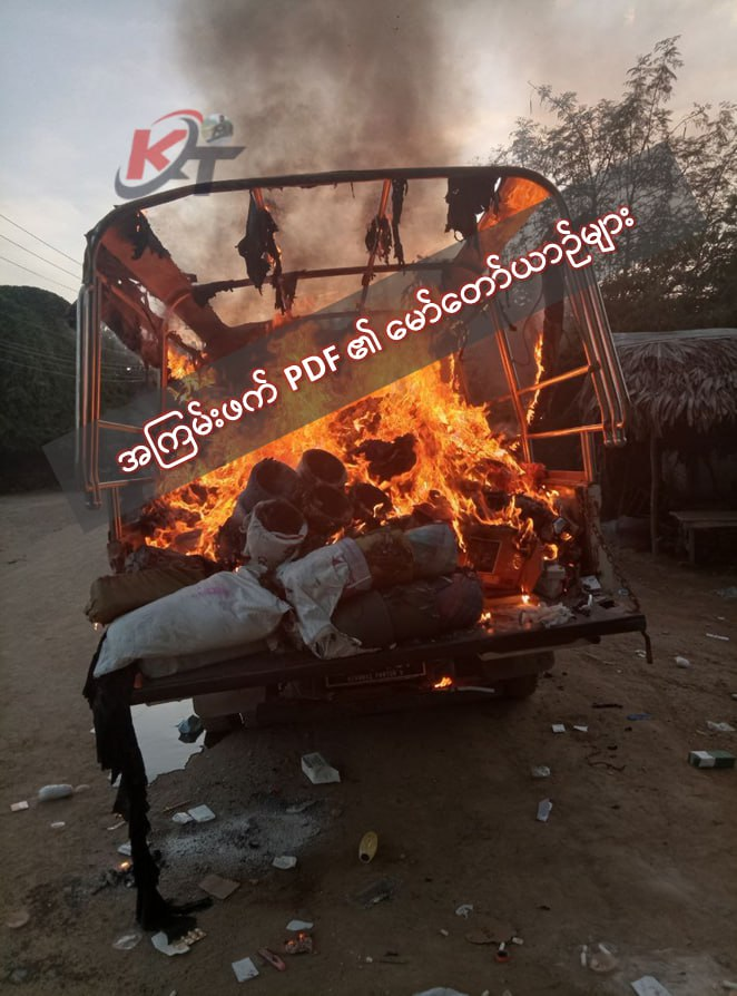 (၅) LIGHT TRUCK ကား(၁)စီး (ယာဉ်မောင်းနှင့်အတူ ဈေးပစ္စည်း အပြည့်တင်ဆောင်ထား) တို့အားသိမ်းဆည်းရရှိခဲ့ပြီး လုံခြုံရေးအဖွဲ့ဝင်များ နယ်မြေရှင်းလင်းရေး ဆက်လက်ဆောင်ရွက်လျက်ရှိကြောင်း သိရှိရသည်။