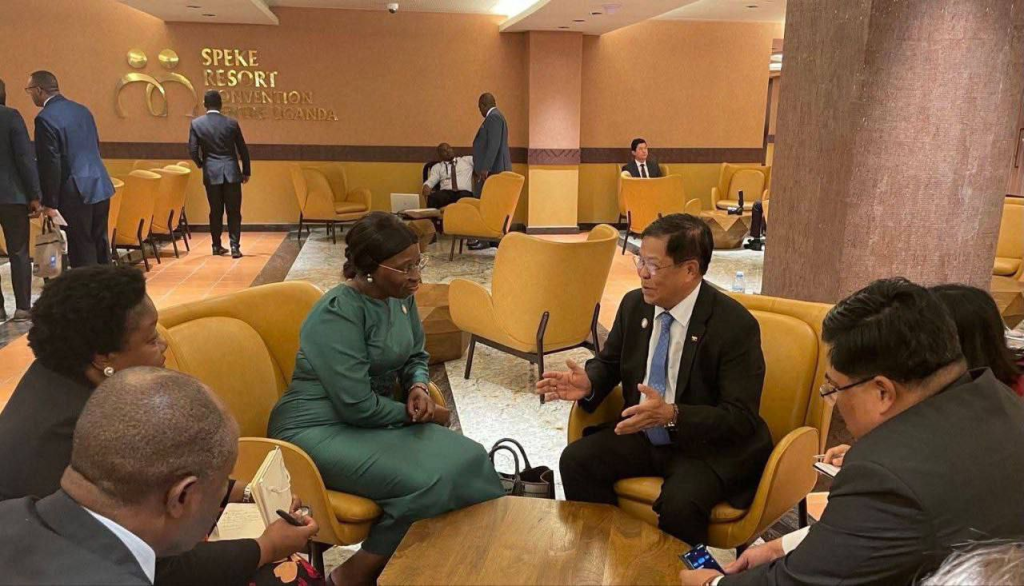 ယူဂန်ဒါနိုင်ငံ၊ ကမ်ပါလာမြို့၌ကျင်းပသည့် ဘက်မလိုက်လှုပ်ရှားမှုအဖွဲ့၏ ဝန်ကြီးအဆင့်အစည်းအဝေးတက်ရောက်နေသော နိုင်ငံခြားရေးဝန်ကြီးဌာန၊ ပြည်ထောင်စုဝန်ကြီးဦးသန်းဆွေသည် အစည်းအဝေးတက်ရောက်လာသည့် နိုင်ငံ(၇)ခုမှ နိုင်ငံခြားရေးဝန်ကြီးများ၊ တာဝန်ရှိသူများနှင့် သီးခြားစီတွေ့ဆုံဆွေးနွေးမှုများ ပြုလုပ်ခဲ့ပါတယ်။