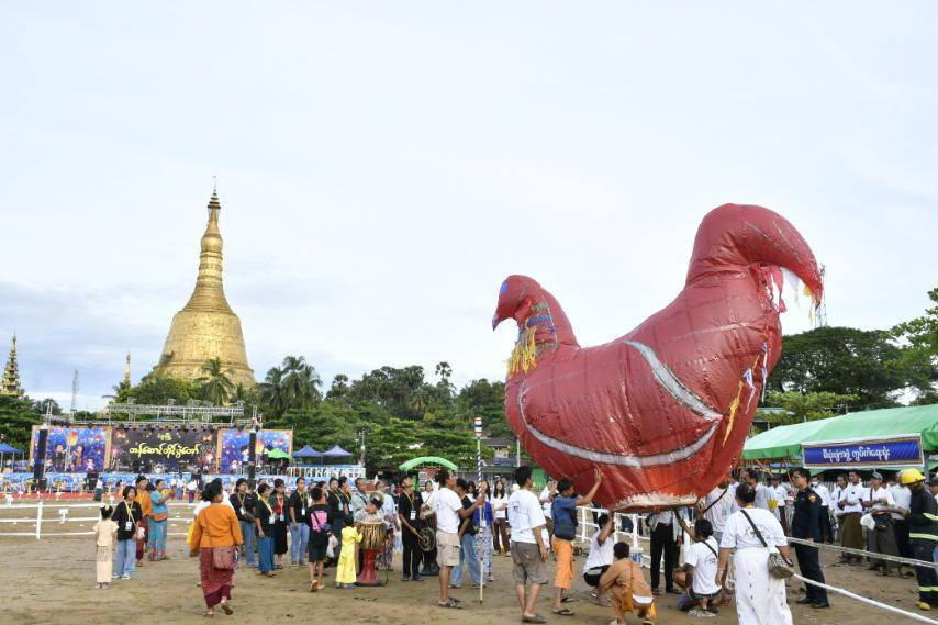 အဆိုပါ နေ့အရုပ်မီးပုံးပျံများအား ညနေ(၄)နာရီမှစ၍ နွား၊ သိန်းငှက်၊ ကြက်၊ ဆင်၊ ငန်း၊ ဘဲ စသည့် နေ့အရုပ်မီးပုံးပျံ(၇)ခုအား လွှတ်တင်ပူဇော်ခဲ့ကြပြီး ညပိုင်းအချိန်တွင် မီးစင်္ကြာလှည့်လည်ပူဇော်ပွဲ၊ တန်ဆောင်တိုင်ဖွင့်ပွဲ၊ မီးပုံးပျံအကြီး၊ အသေးလွှတ်တင်ပူဇော်ခဲ့သည်။