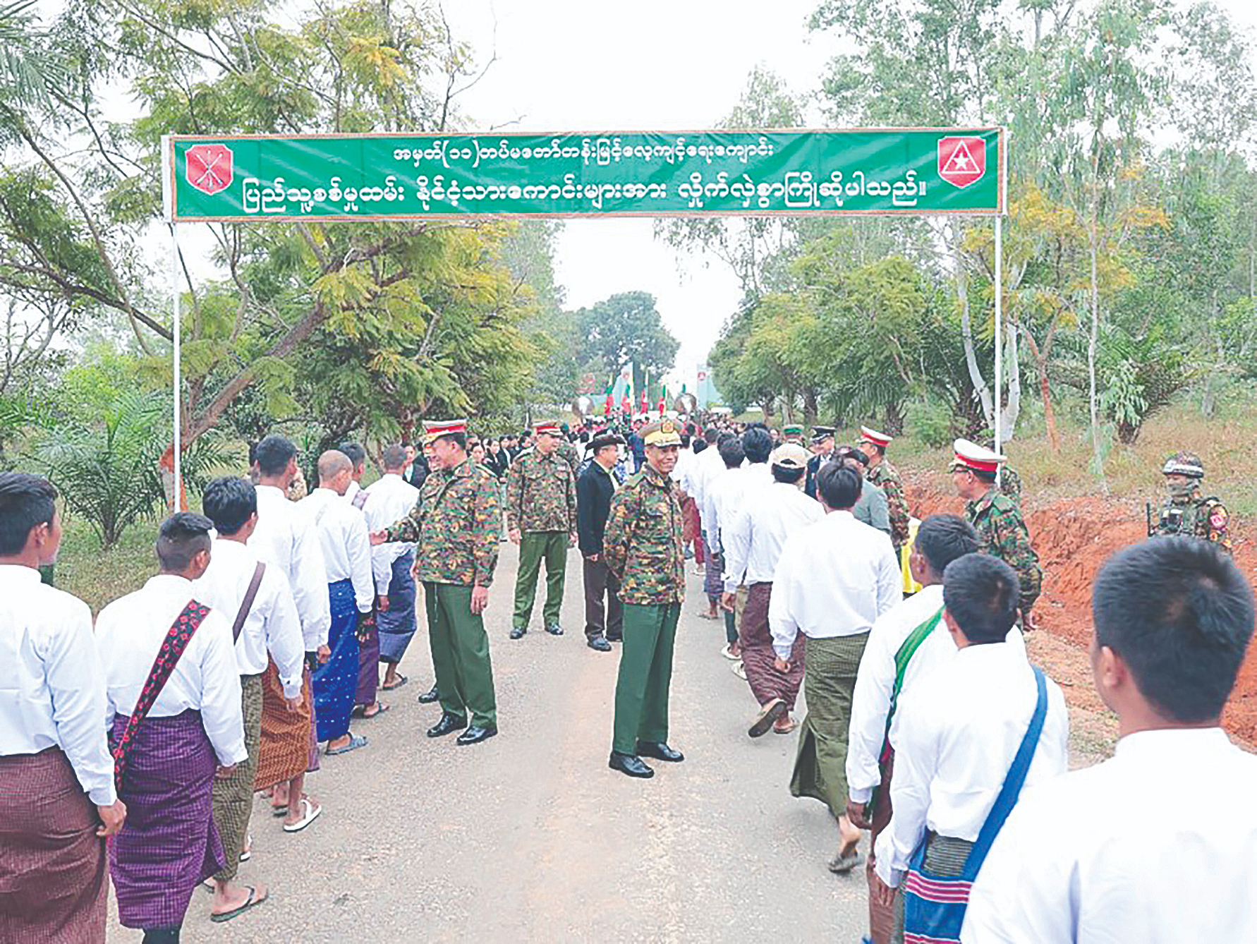 ပြည်သူ့စစ်မှုထမ်းသင်တန်းအမှတ်စဉ်(၂၀)သို့ တက်ရောက်ကြမည့် ရှမ်းပြည်နယ် အတွင်းရှိ နိုင်ငံ့သားကောင်းရတနာများအား ကြိုဆိုပွဲကို ယနေ့နံနက်ပိုင်းတွင် ကျိုင်းတုံမြို့ရှိ နယ်မြေခံသင်တန်းကျောင်း၌ ပြုလုပ်ရာ တြိဂံဒေသတိုင်းစစ်ဌာနချုပ်တိုင်းမှူး ဗိုလ်ချုပ်စိုးလှိုင်နှင့် တာဝန်ရှိသူများ၊ မြန်မာနိုင်ငံရဲတပ်ဖွဲ့ဝင်များ၊ စစ်မှုထမ်းဟောင်းအဖွဲ့ဝင်များ၊ တိုင်းရင်းသားယဉ်ကျေးမှုအဖွဲ့များနှင့်ပြည်နယ်အဆင့် ဌာနဆိုင်ရာတာဝန်ရှိသူများ တက်ရောက်ကြသည်။