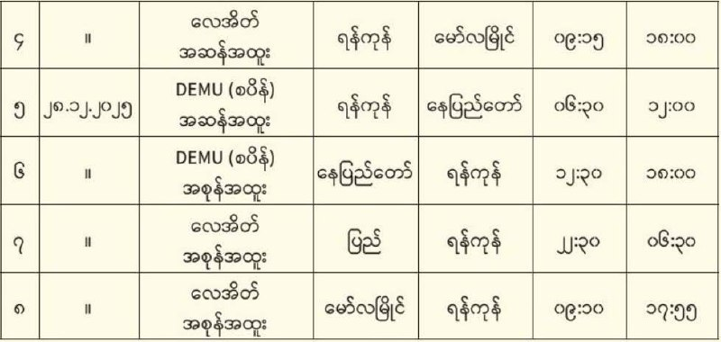 ခရစ်စမတ်ရုံးပိတ်ရက်အတွက် အထူးရထားများ တိုးချဲ့ပြေးဆွဲပေးမည်