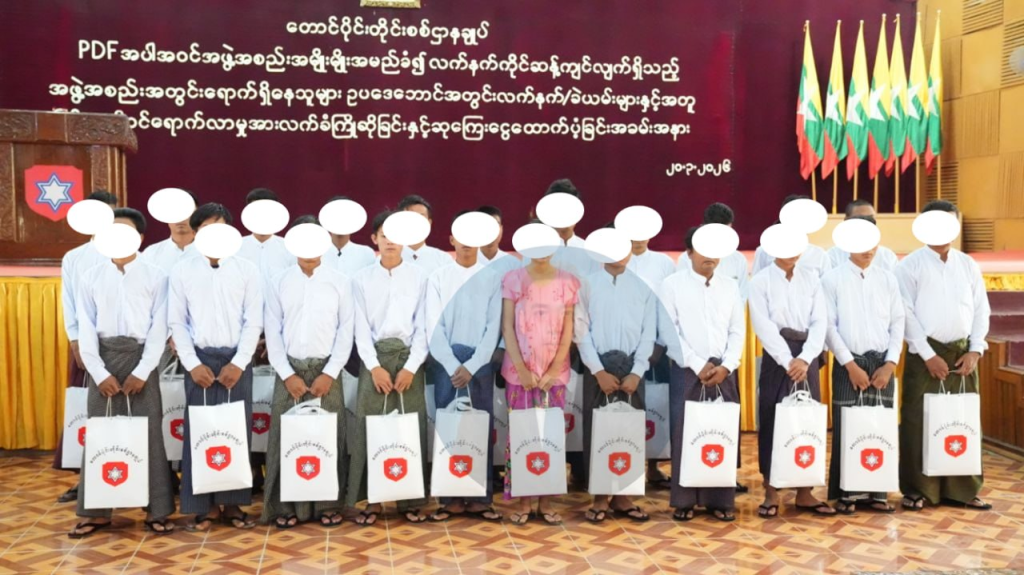 ပဲခူးတိုင်းဒေသကြီးအခြေစိုက် တောင်ပိုင်းတိုင်းစစ်ဌာနချုပ်မှာ ကိုယ်ဝန်ဆောင်သည် PDF အမျိုးသမီးတစ်ဦးနဲ့ PDF အဖွဲ့ဝင် အမျိုးသား (၂၁)ဦး အလင်းဝင်ရောက်ခဲ့ကြပါတယ်။