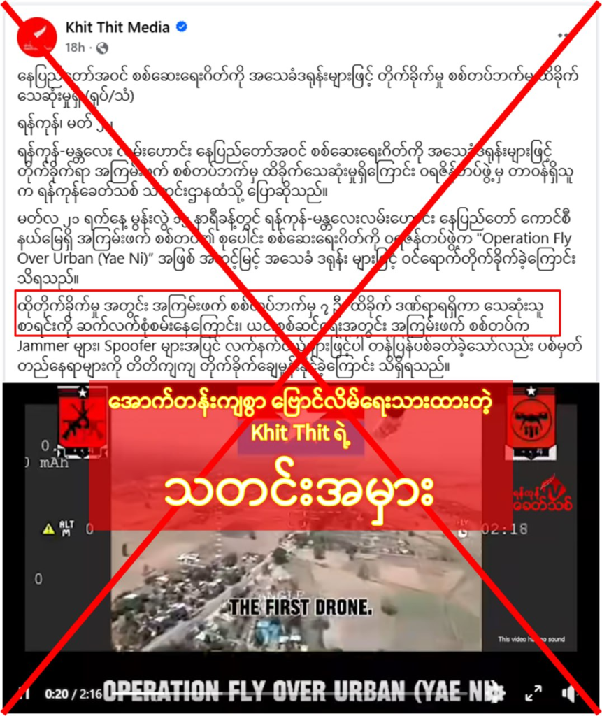 နေပြည်တော်အဝင်စစ်ဆေးရေးဂိတ်ကို ဒရုန်းဖြင့်တိုက်ခိုက်တာ တပ်မတော်ဘက်မှ ၇ ဦး ထိခိုက်ဒဏ်ရာရပြီး သေဆုံးမှုရှိတယ်လို Khit Thit မှ သတင်းအမှားဖြန့်ဝေ