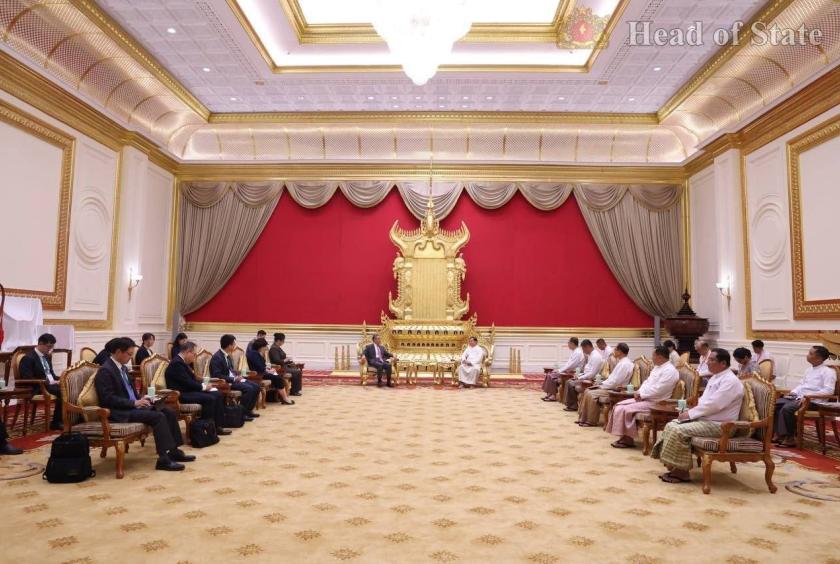 နိုင်ငံတော်သမ္မတ ဦးမင်းအောင်လှိုင်သည် တရုတ်ကွန်မြူနစ်ပါတီဗဟိုကော်မတီ၊ နိုင်ငံရေးရာဗျူရိုအဖွဲ့ဝင်နှင့် နိုင်ငံခြားရေး ဝန်ကြီး မစ္စတာဝမ်ယိဦးဆောင်သော ကိုယ်စားလှယ်အဖွဲ့အား ဧပြီ ၂၅ ရက် မွန်းလွဲပိုင်းတွင် နေပြည်တော်ရှိ နိုင်ငံတော်သမ္မတ၏ ဧည့်ဆောင်တော်၌ လက်ခံတွေ့ဆုံခဲ့​ကြောင်း သိရသည်။
