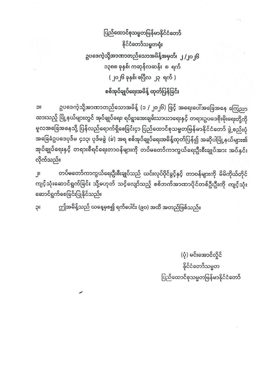 230kV လှော်ကားပင်မဓာတ်အားခွဲရုံတွင် တည် ဆောက်ပြီးစီးသွားသည့် တိုးချဲ့(230/33/11) kV, (150) MVA Bank-1 Tr; နှင့် Bank-2 Tr; တိုအား ဓာတ်အားပိုလွှတ်အသုံးပြုရန် […]
